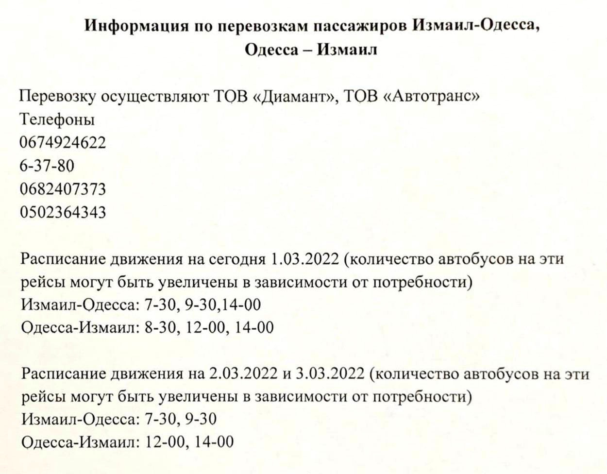 Благодаря взаимодействию городской власти Измаила и перевозчиков, удалось наладить автобусное сообщение Измаил-Одесса, также все желающие могут сегодня вернуться из Киева в Измаил.