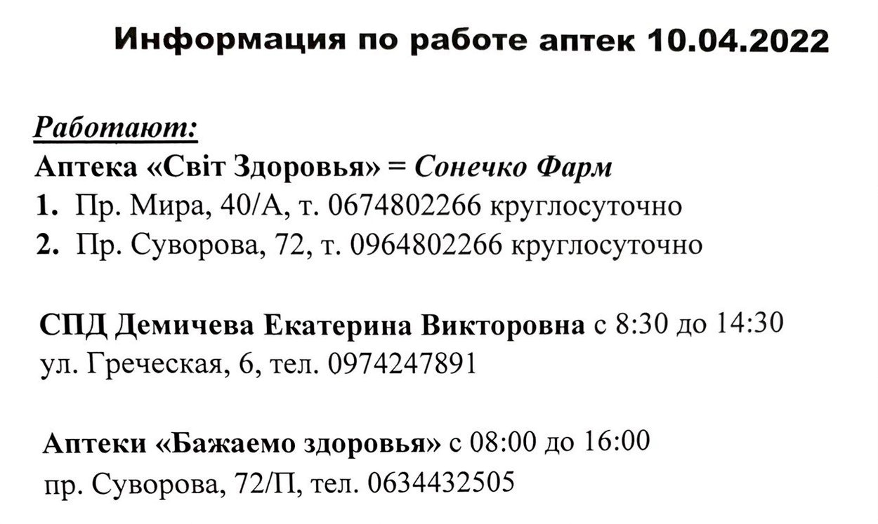 - Что касается аптек, будет работать четыре дежурные аптеки на случай острой необходимости и закупки лекарств для тех, кто находится в больницах, для сил обороны, для работников критической инфраструктуры и предприятий жизнеобеспечения, которые будут выполнять свои функции. А также для тех, кому аптеки нужны будут при острых состояниях – это единичные случаи, и это всегда можно объяснить, - сказал мэр.