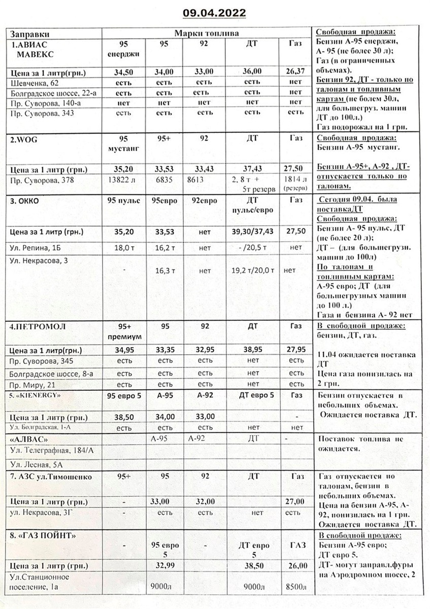 - Завтра для обеспечения потребностей органов правопорядка и сил обороны будут работать и АЗС. Но только для спецтранспорта предприятий критической инфраструктуры и сил обороны, - уточнил городской голова.