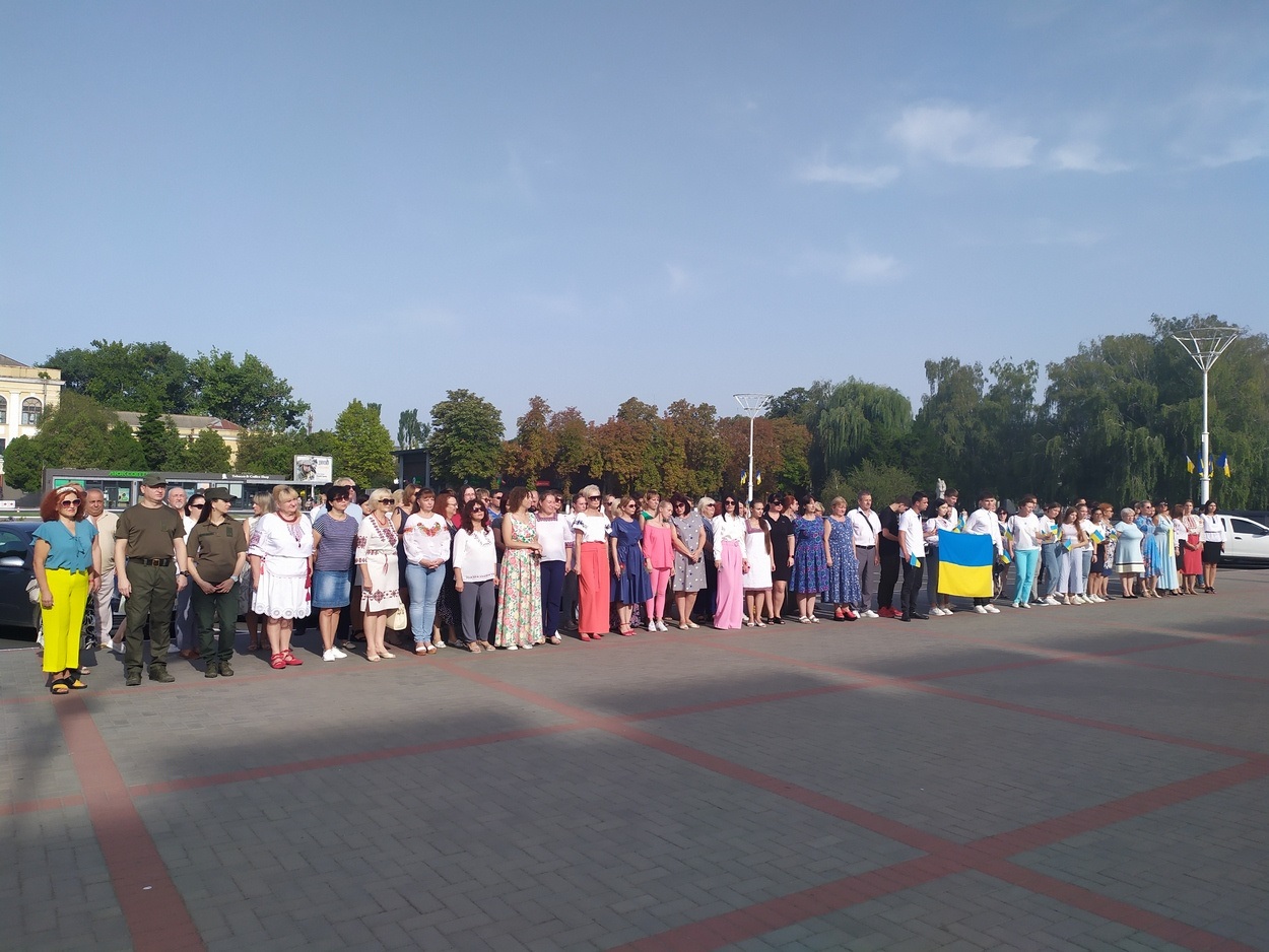 Также на площади собрались измаильчане, многие в вышиванках и одежде в цветах национального флага, с сине-желтыми флажками в руках.