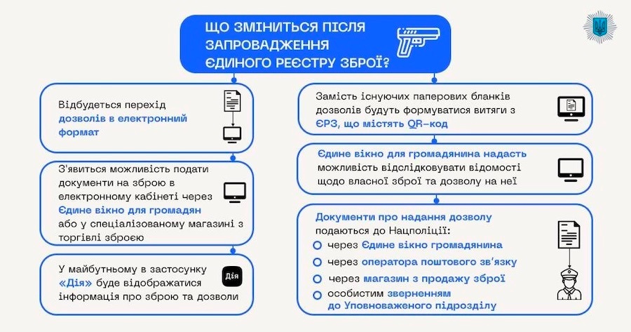 - Украинцы смогут получить услугу, не выходя из дома, без посещения органа Нацполиции путем подачи документов через Единое окно гражданина или в магазине по продаже оружия, - пояснили в МВД.