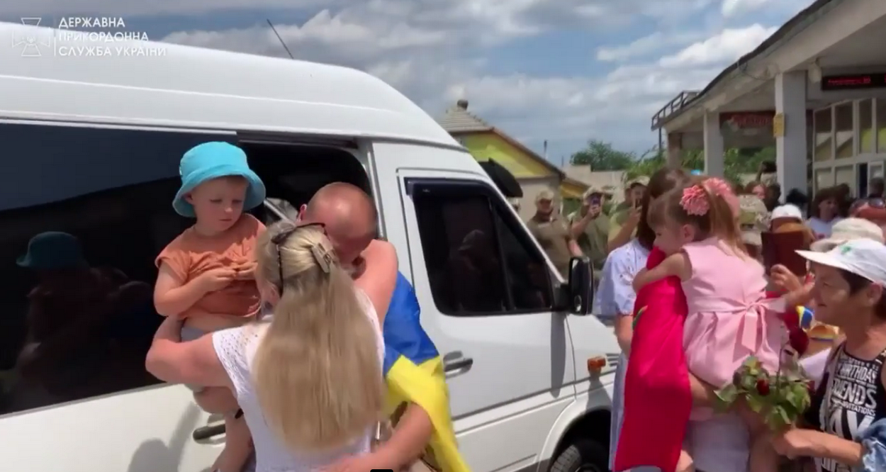 Вернувшихся из российского плена пограничников-защитников острова Змеиный встретили их побратимы и родственники.