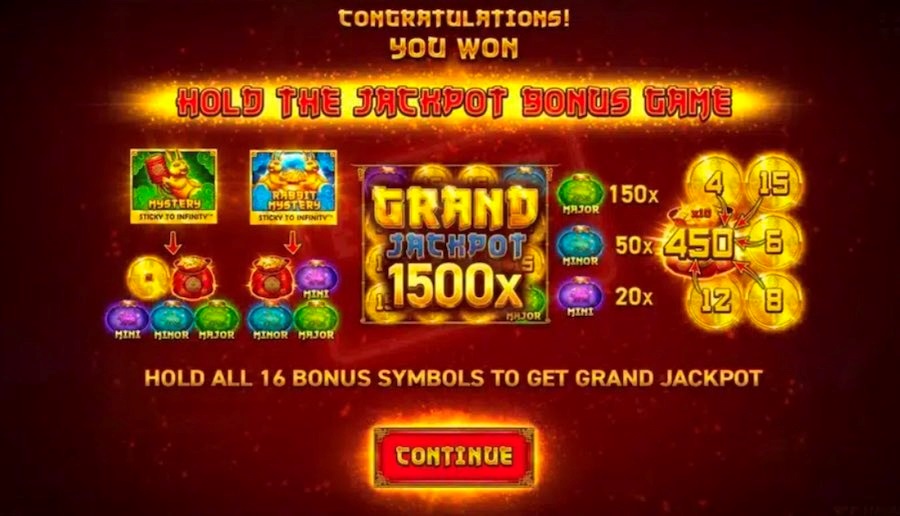 Повторні оберти у кількості трьох початкових запускається за умови запуску Hold the Jackpot. Також, респіни можуть оновлюватися із кожним падінням липкого кроля. Тим часом заповнення всіх 16 осередків на полі збільшить ставку у 1500 разів. Далі, гра повертається до початкового рівня, що дасть змогу підвищити ставку та почати більш захопливу пригоду.
