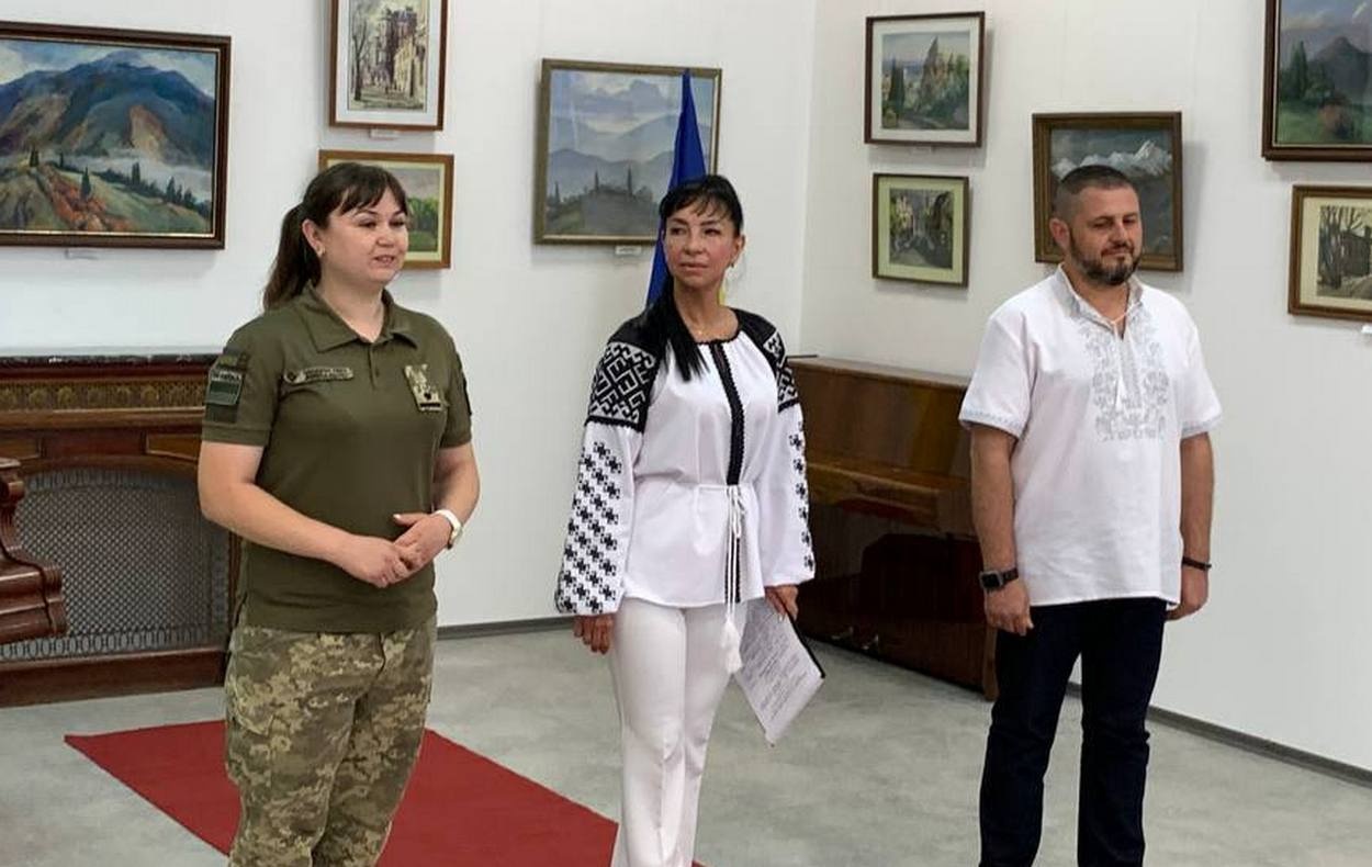 Открылось мероприятие в Измаильской картинной галерее звучанием государственного гимна Украины в исполнении заслуженного артиста эстрадного искусства Украины Ивана Носика. Затем к присутствующим обратились директор ОЦЭВ им.Эмилии Евдокимовой Ирина Федорова и заместитель городского головы Сергей Лузанов.