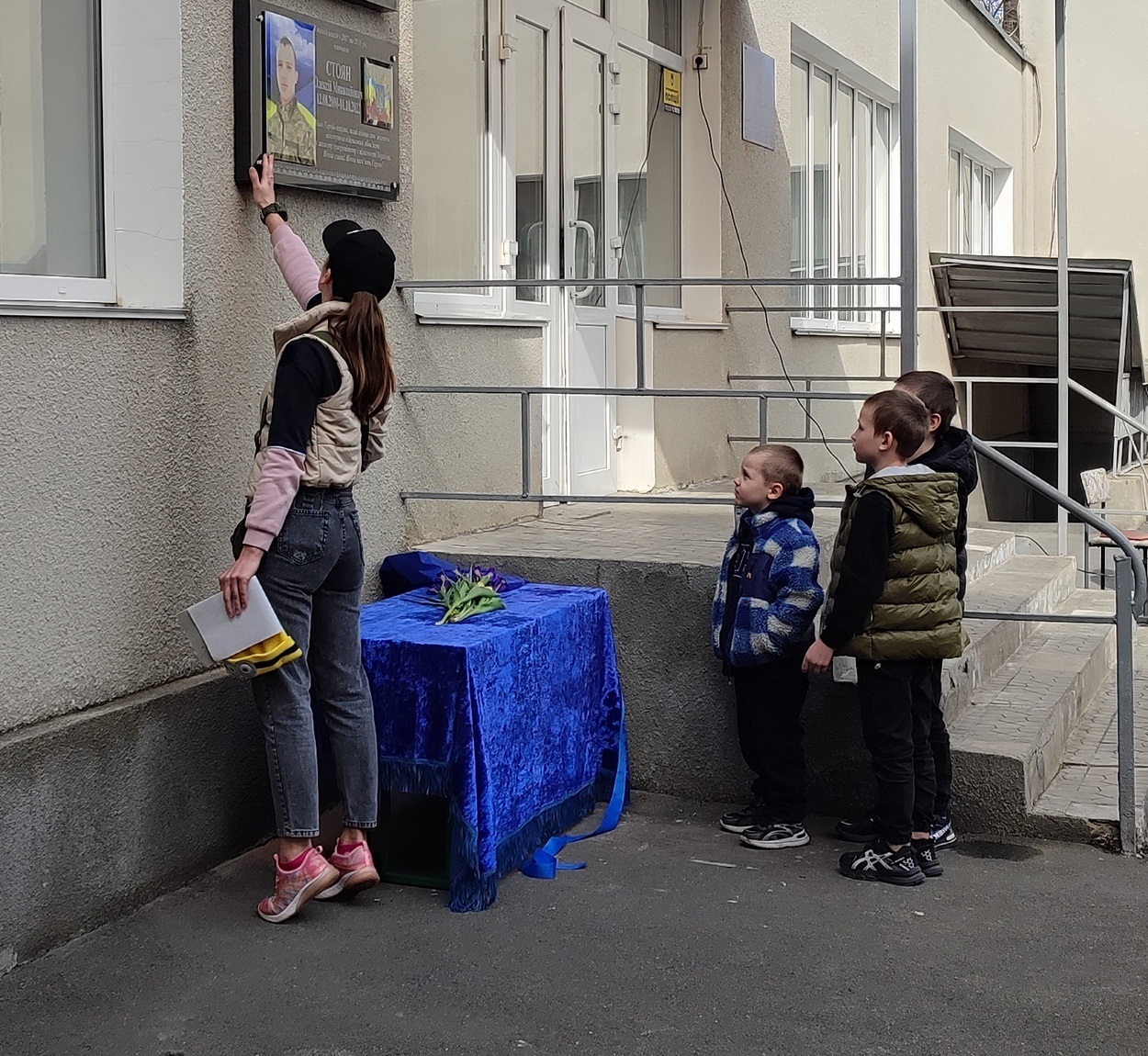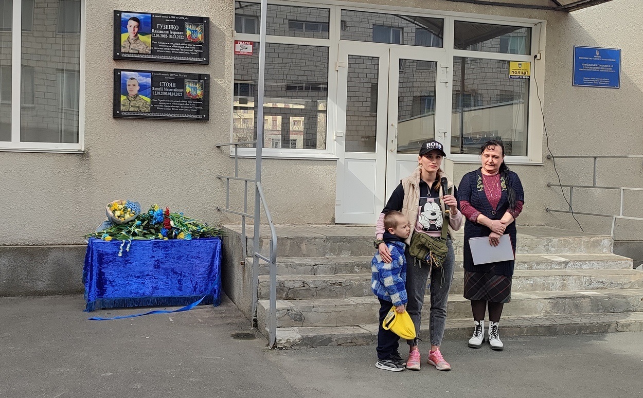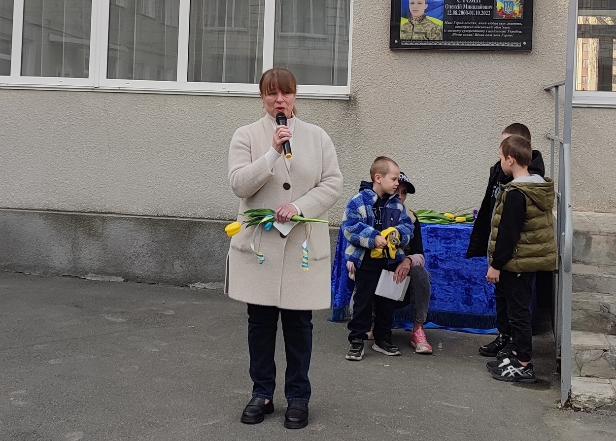 Право відкрити меморіальну дошку Олексію Стояну було надано його старшій сестрі – Ганні Боцу та синам полеглого воїна.