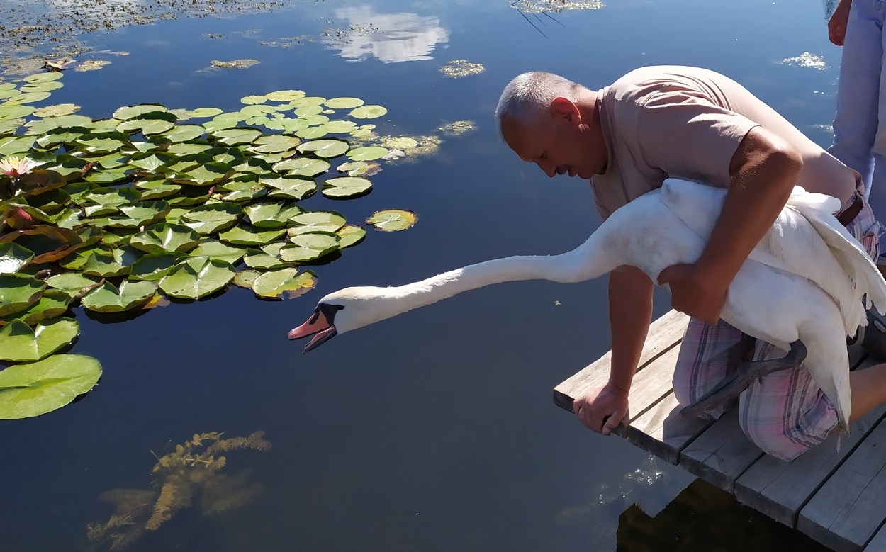 Возле Дуная лебедь стал не только живым бесплатным аттракционом для отдыхающих, но и чуть не погиб от рук асоциальных элементов.