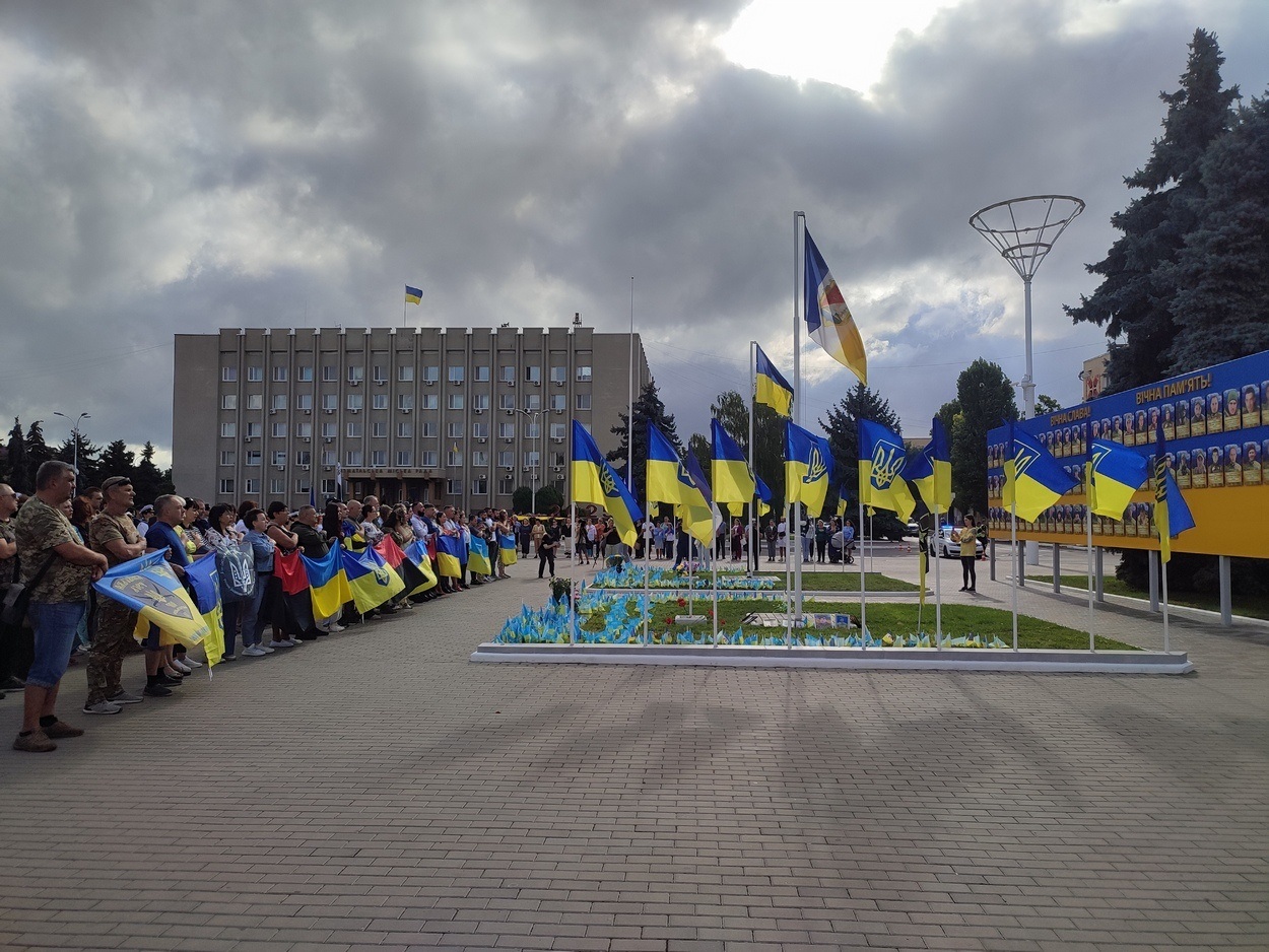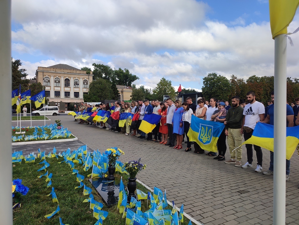 Біля меморіалу полеглим воїнам зібралися представники міської та районної влади, військові, ветерани, родини захисників, близькі полеглих героїв, волонтери, громадські активісти, ізмаїльчани та ті, для кого під час війни Ізмаїл став другою домівкою.