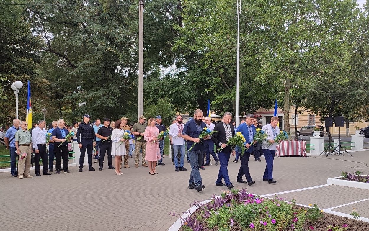 Керівництво міста, району, військовослужбовці, представники Сил оборони, громадськості, волонтери, мешканці та гості міста вшанували хвилиною мовчання тих, хто віддав своє життя в боротьбі за незалежність та свободу України.