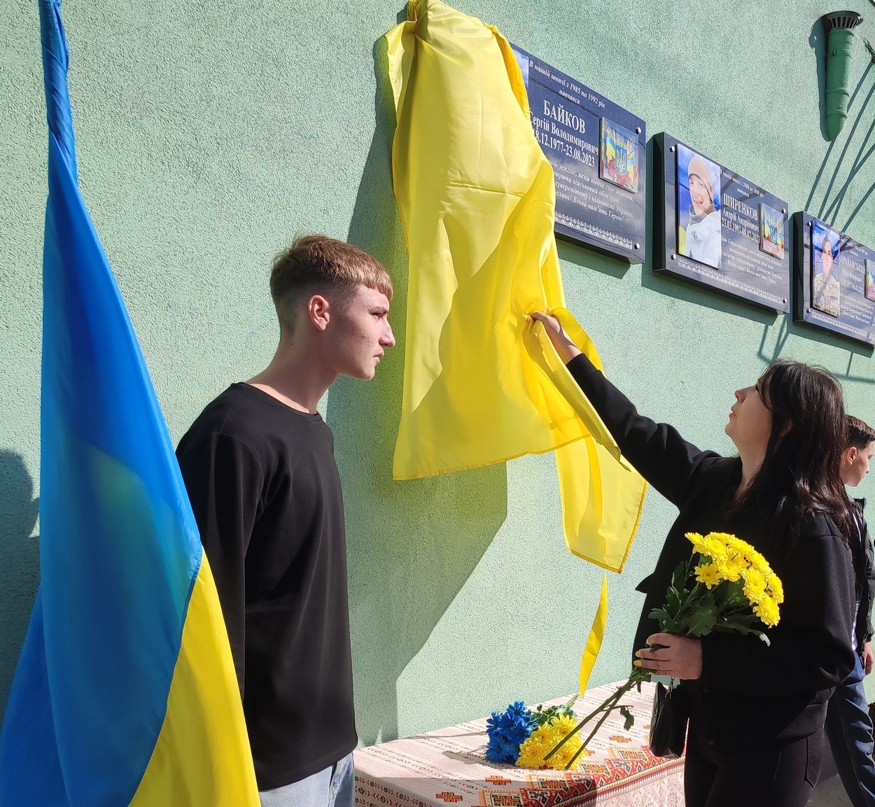 В знак шани та вдячності за подвиг Сергія Байкова, який пожертвував власним життям заради свободи своєї країни, присутні поклали квіти до меморіальної дошки на його честь.