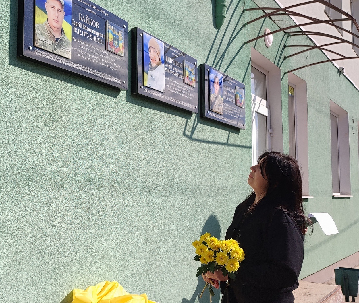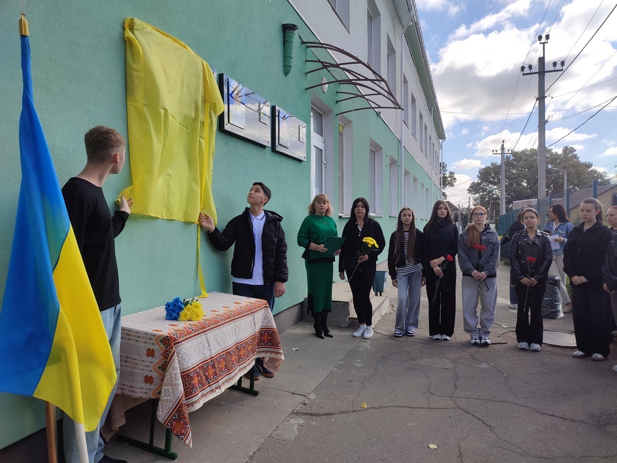 А сьогодні, два роки потому, на фасаді його рідної школи з’явилася пам’ятна дошка з його ім’ям. Право відкрити меморіальну табличку було надане сестрі полеглого воїна Наталії Жарук.