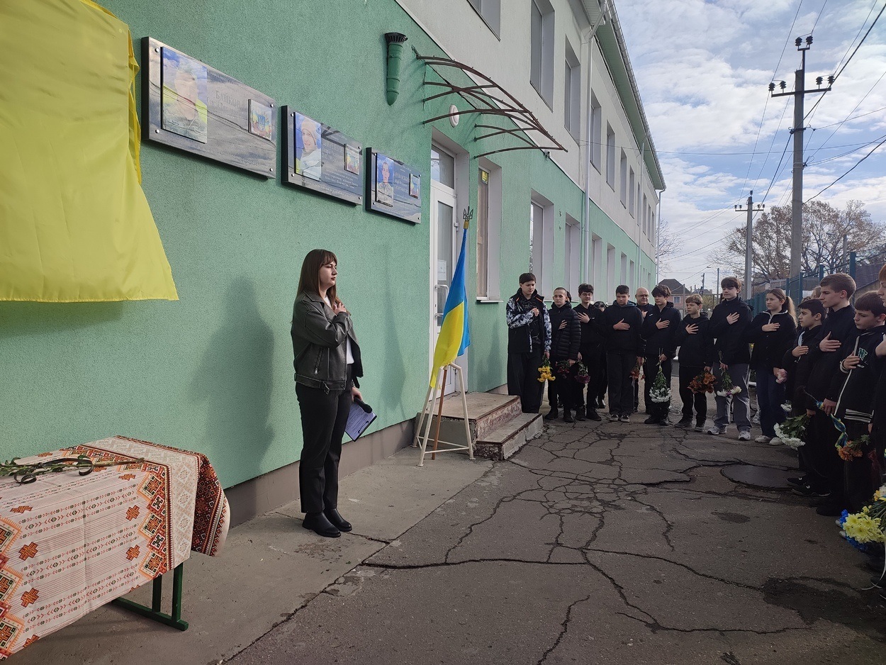 Перед церемонією відкриття дошки присутні вшанували хвилиною мовчання пам’ять усіх, хто віддав життя за Україну — військових, цивільних, дітей.