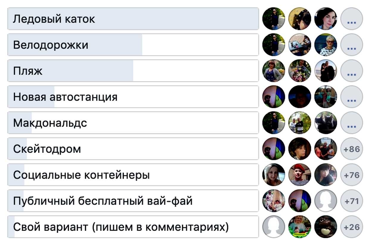 Абсолютным лидером соцопроса стал вариант «ледовый каток», который набрал 1100 голосов. «Ого, сколько фигуристов в городе!», - пошутил кто-то в комментариях. Да, ледовый каток измаильчане хотят давно. И он будет. Об этом летом заявили местные власти - уже в октябре текущего года нам обещают появление ледового катка на площади возле Центра досуга «Портовик».