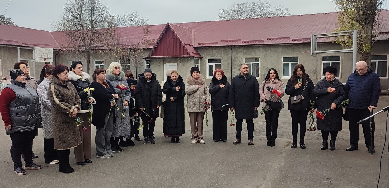 Учасники церемонії вшанували Максима Горбаченка та всіх загиблих за Україну хвилиною мовчання, після чого поклали квіти до меморіальної дошки.