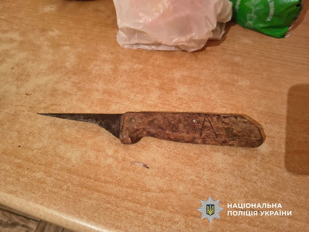 Слідчі затримали зловмисника та вилучили з місця події низку речових доказів, зокрема кухонний ніж.