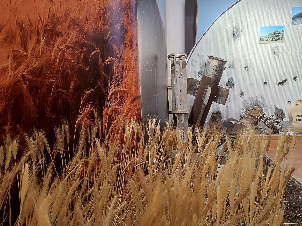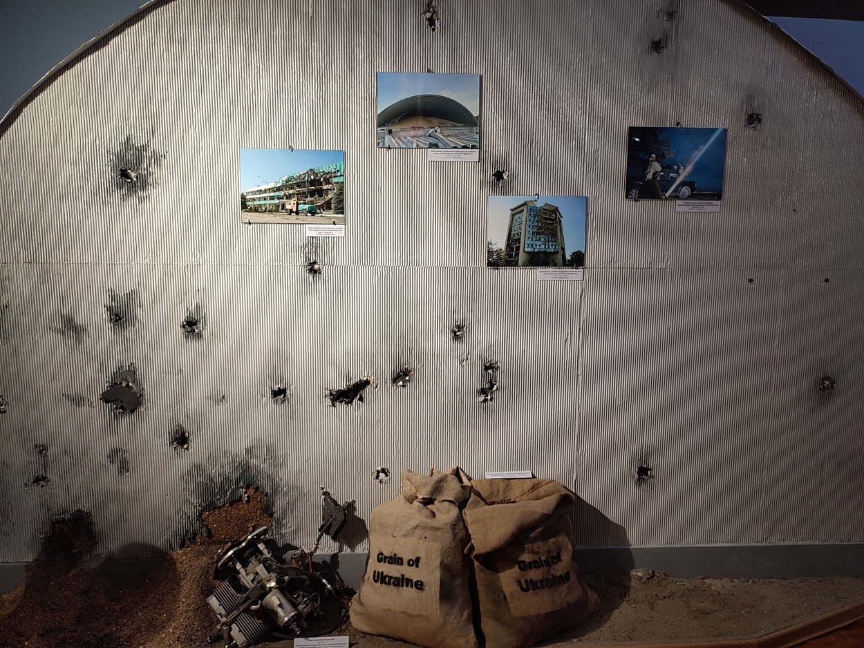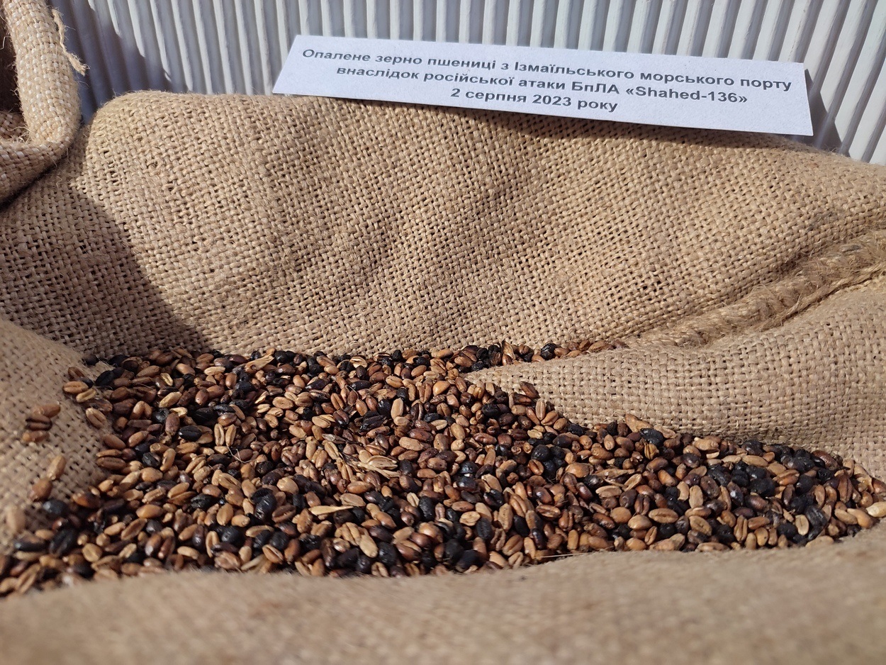 Тут представлені світлини, уламки снарядів, шахедів, опалене зерно та понівечена інфраструктура дунайських портів.