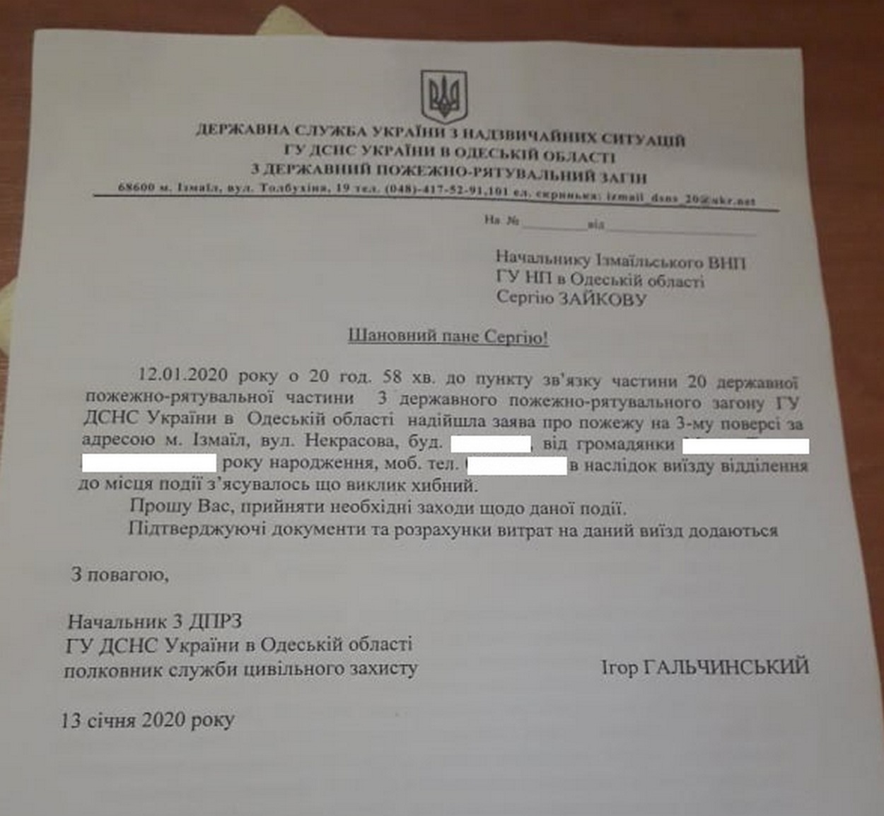 - В данном случае, заявление от ГСЧС зарегистрировано, будет рассматриваться службой превенции, - проинформировала пресс-офицер Измаильского отдела полиции Елена Капшук. – Заведомо ложный вызов пожарной охраны, полиции, скорой медицинской помощи или аварийных служб – влечет за собой наложение штрафа от трех до семи необлагаемых минимумов доходов граждан.